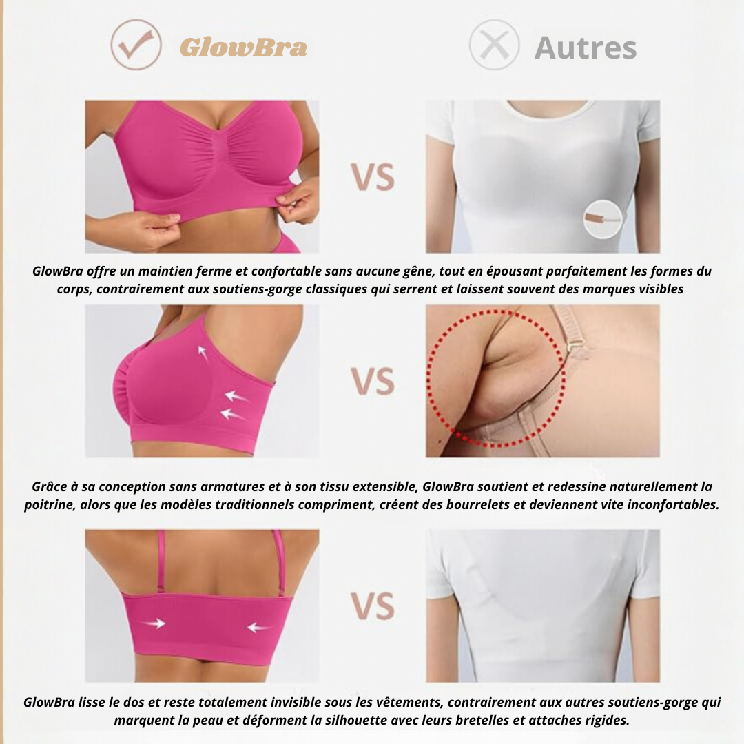 Enfilez GlowBra et profitez instantanément d’une silhouette lisse, d’un dos sans marque, et d’un maintien ultra-confortable toute la journée !